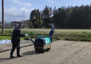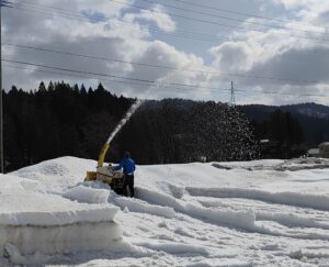 今年は積雪が多く、春の苗代準備で雪割りしました